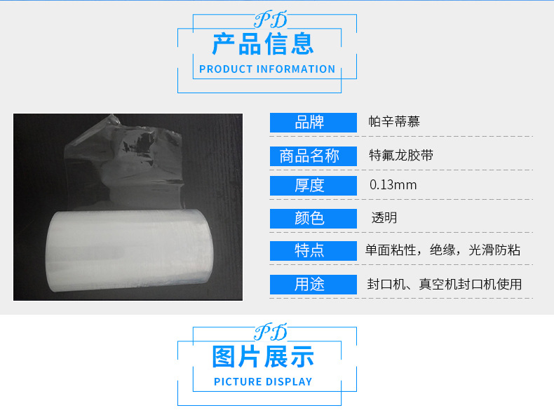 帕辛蒂慕科技最新研發質優價廉出口專用FEP透明特氟龍膠帶鐵氟龍ptfe